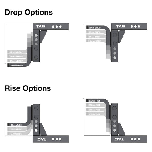 TAG Adjustable Heavy Duty Tow Ball Mount - 90° Face, 50mm Square Hitch