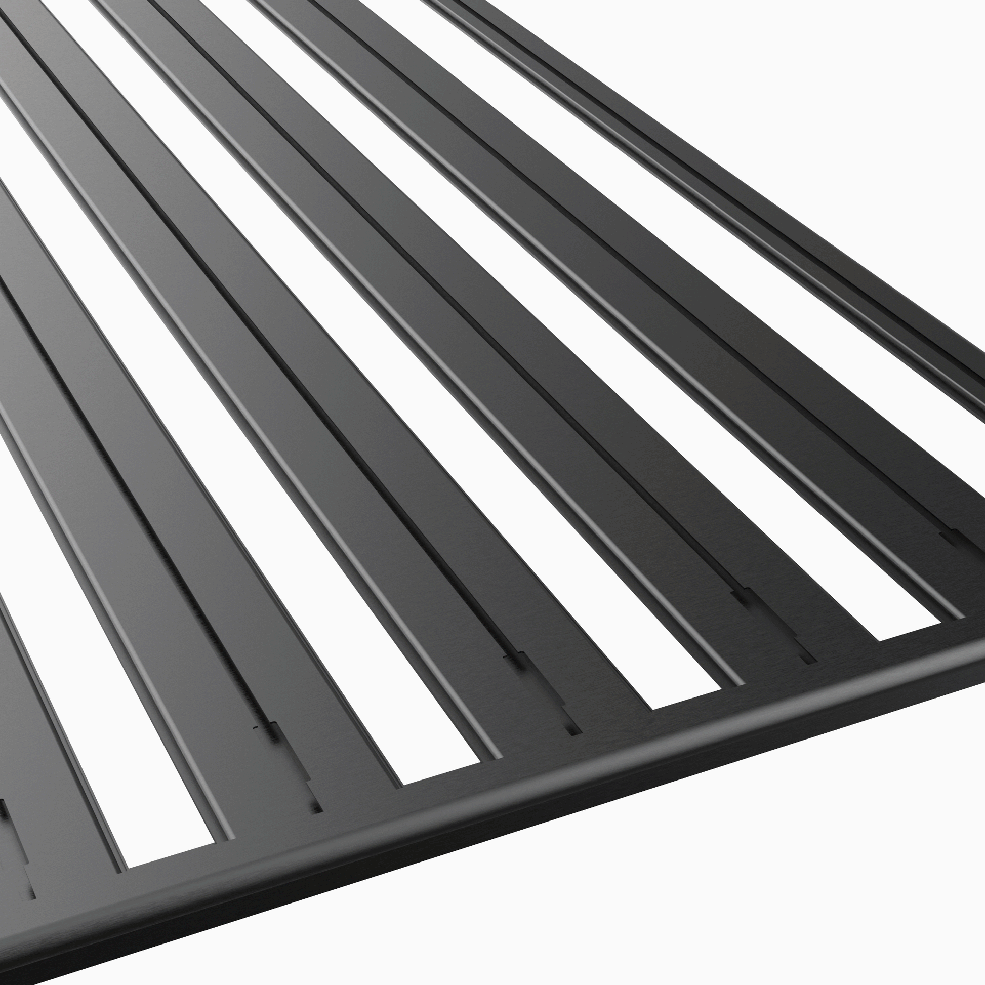 Mounting slots provide flexibility in fastener locations for easy mounting on all track-based roofrack systems.