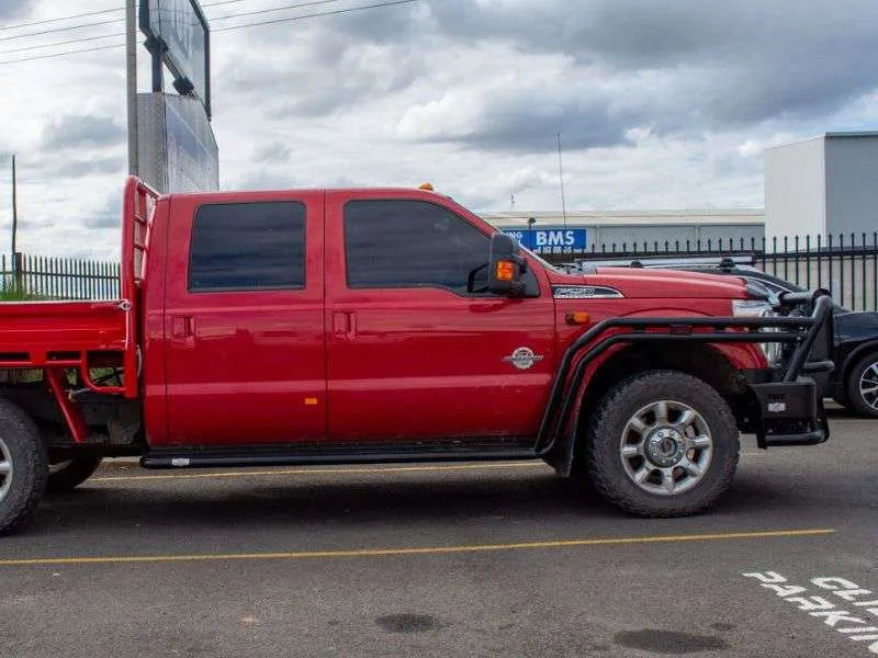 Equip your 4WD with ultimate side and front-quarter protection using these Heavy-Duty Twin Brush Bars and Side Steps. Essential for tackling tight tracks and dense scrub, this system safeguards your vehicle's vulnerable body panels from rocks, logs, and debris. The integrated side steps not only enhance protection along the sills but also provide a secure, non-slip platform for easy cabin access, especially on lifted vehicles.